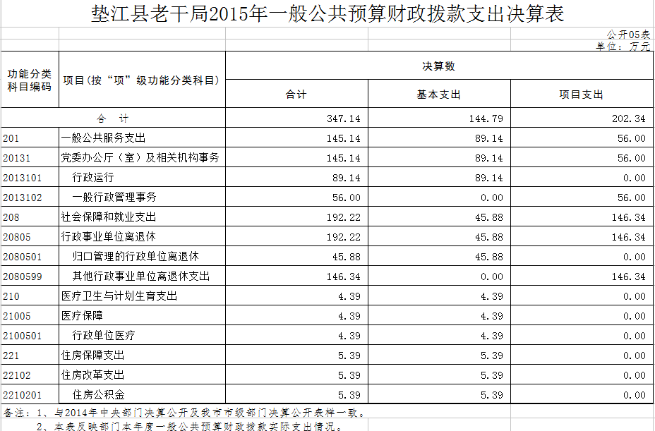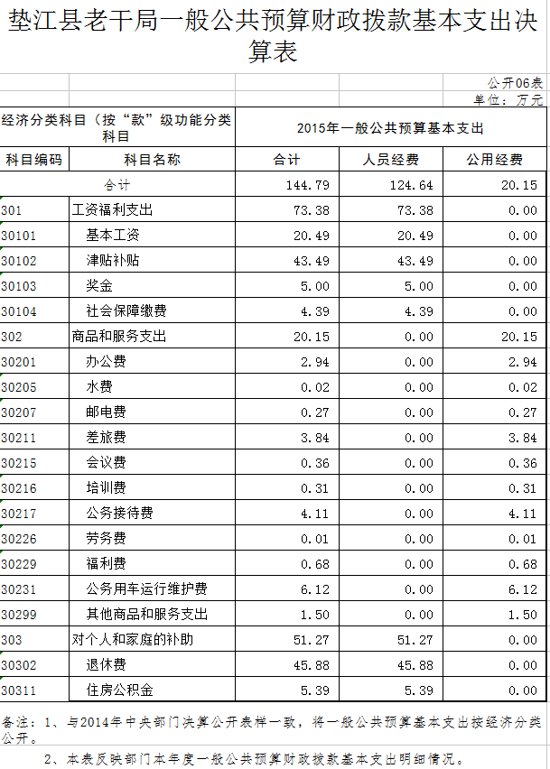 根据县财政局《关于2015年县级部门决算公开工作方案通知》(垫江财政发[2016]198号)文件精神,现对县委老干部局2015年部门决算情况进行公开。