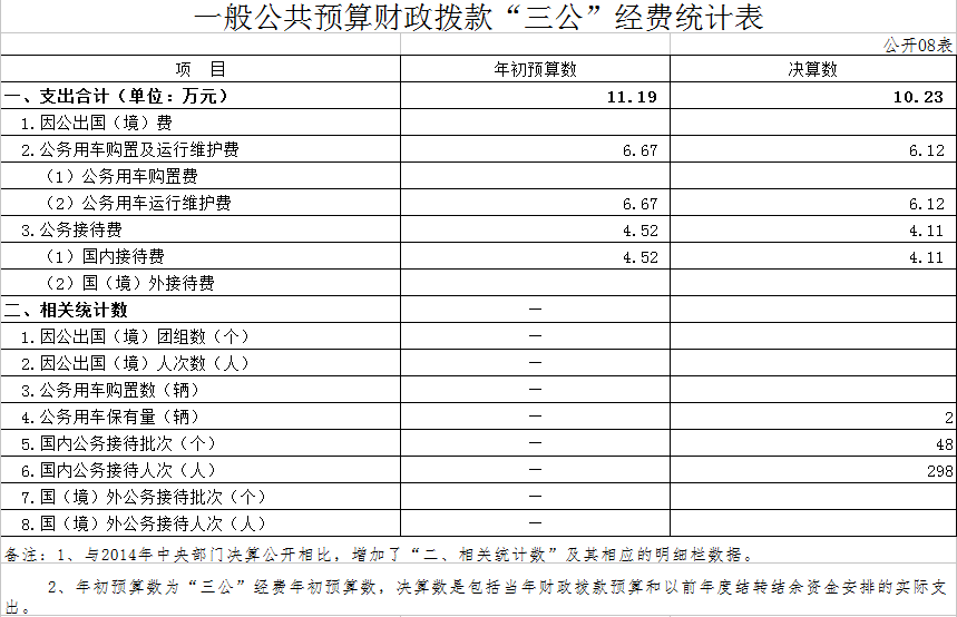 五、“三公”经费总额情况:决算比预算有减无增,年初预算11.19万元,决算数为10.23万元。