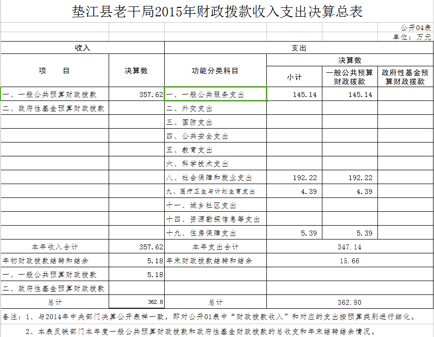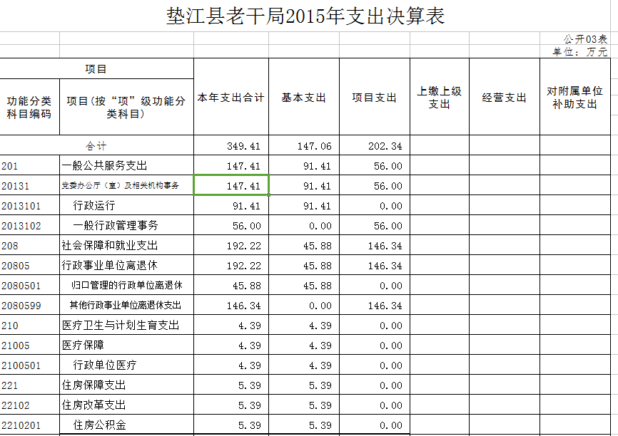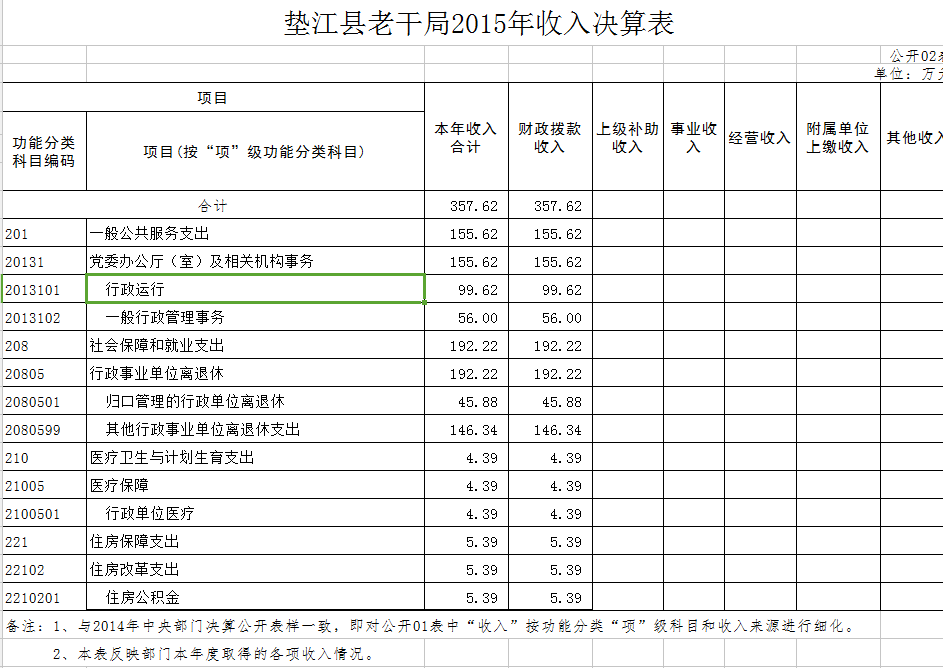 中共垫江县委老干部局部门决算情况公示公告